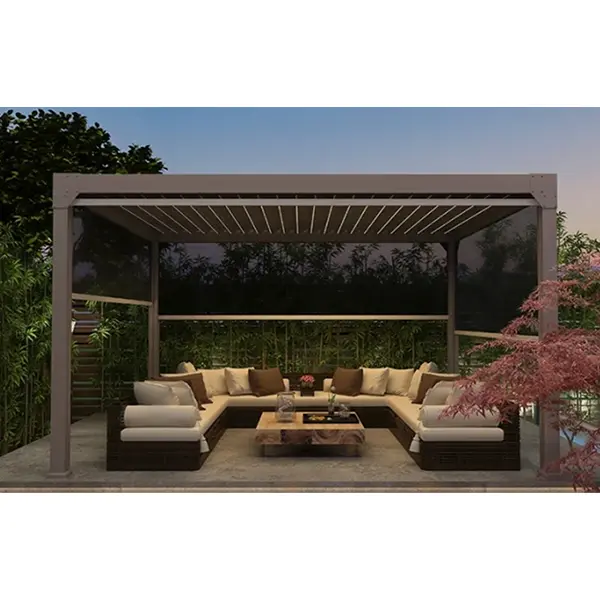 Като професионален производител на беседки, ние включваме прецизен дизайн в нашите електрически прибиращи се беседки, съчетавайки вносни безшумни двигатели и скрита дренажна система. Това гарантира, че нашите беседки притежават основни характеристики на интелигентен контрол, структурна стабилност и устойчивост на атмосферни влияния, като същевременно поддържат персонализирано персонализиране на размер, цвят и функционални модули. Те могат да интегрират аксесоари като осветление и ролетни щори, като се адаптират към различни сценарии като вилни дворове, тераси и търговски зони за отдих, създавайки интелигентно и практично изживяване за свободното време за различни външни пространства.